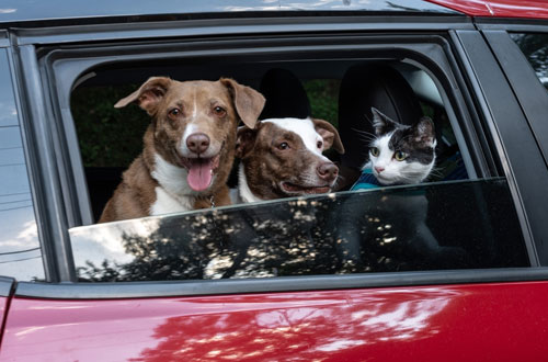 Move your pet to a quiet area. Speak softly and keep them calm. Call us before you leave if you can—we’ll let you know what to do next and get ready for your arrival. If you’re alone or overwhelmed, ask someone to come with you.